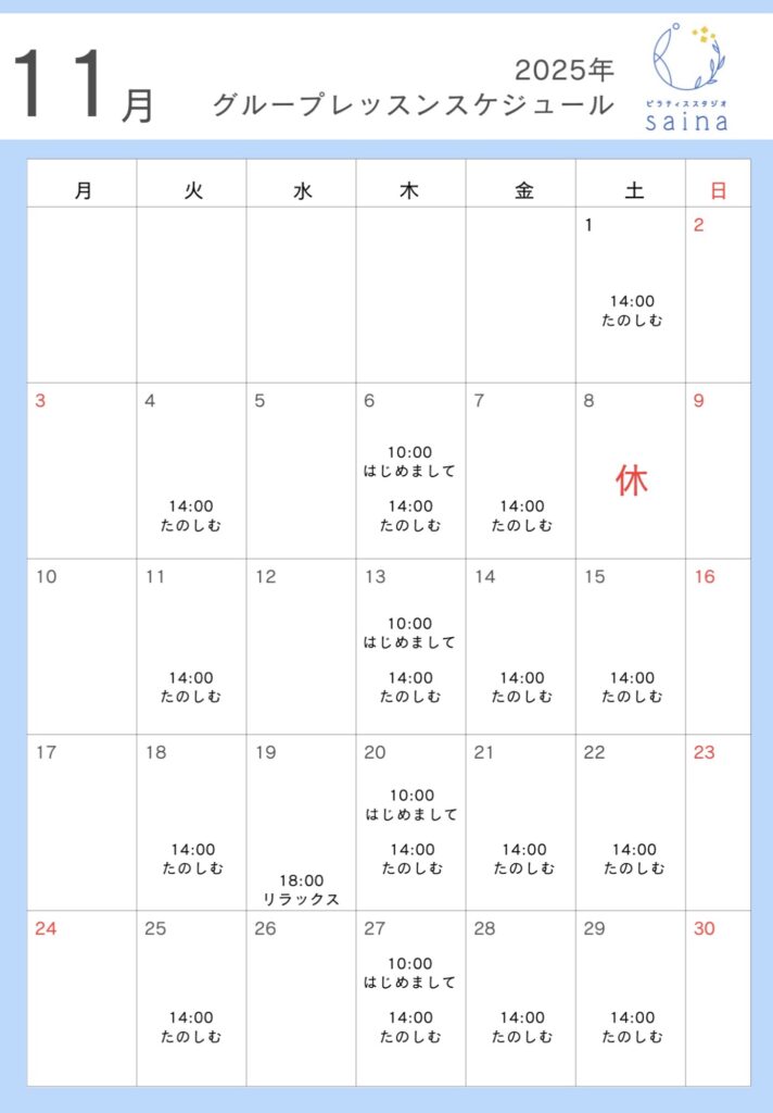 メールで返信しますので「info@saina-pilates.com」から返信を受け取れるよう、設定をお願いいたします。